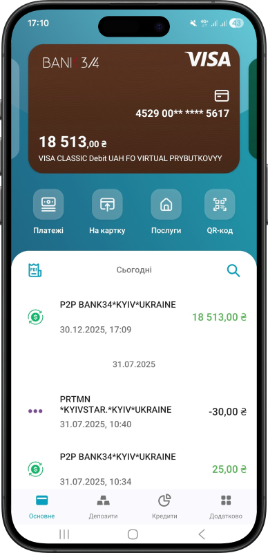 Інтуїтивно зрозумілий інтерфейс та швидкий доступ до послуг Банку завжди у твоїй кишені